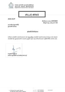 1897 ஆம் ஆண்டு இலக்கம் 03 இன் கீழான தனிமைப்படுத்தல் மற்றும் நோய் தடுப்புக் கட்டளைச் சட்டத்தின் எற்பாடுகளை நடைமுறைப்படுத்தும் வகையில் (2020.10.07) இன்று முதல் மறு அறிவித்தல் வரையில் கீழ் கண்ட 17 பொலிஸ் எல்லை பகுதிக்குள் தனிமைப்படுத்தல் ஊரடங்குச் சட்டம் அமுல்படுத்தப்படுகின்றது.
