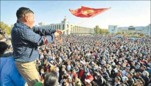 மத்திய ஆசிய நாடுகளில் ஒன்றான கிர்கிஸ்தானில் கடந்த ஞாயிற்றுக்கிழமை பொதுத்தேர்தல் நடைபெற்றது. 120 உறுப்பினர்களை கொண்ட நாடாளுமன்றத்திற்கு 16 கட்சிகளை சேர்ந்த நூற்றுக்கணக்கான வேட்பாளர்கள் போட்டியிட்டனர். கொரோனா தொற்று அச்சுறுத்தலுக்கு மத்தியிலும் வாக்குப்பதிவு விறுவிறுப்பாக நடைபெற்று, 98.14 சதவீத வாக்குகள் பதிவானதாக அந்த நாட்டின் தேர்தல் ஆணையம் தெரிவித்தது. மேலும் வாக்குப்பதிவு முடிந்த உடனேயே வாக்குகள் அனைத்தும் எண்ணப்பட்டு முடிவுகள் அறிவிக்கப்பட்டன. ஆட்சி அமைக்க 61 இடங்கள் தேவை என்கிற நிலையில் எந்த ஒரு கட்சிக்கும் பெரும்பான்மை கிடைக்கவில்லை. அதேசமயம் போட்டியிட்ட 16 கட்சிகளில் வெறும் 4 கட்சிகள் மட்டுமே 7 சதவீத வாக்குகளை பெற்று நாடாளுமன்றத்துக்குள் நுழைவதற்கான தகுதியைப் பெற்றது.