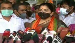 காங்கிரஸ் கட்சியில் இருந்து விலகிய குஷ்பு டெல்லியில் உள்ள பாஜக அலுவலகத்தில் தேசிய பொதுச்செயலாளர் சி.டி.ரவி, தமிழக தலைவர் முருகன் ஆகியோர் முன்னிலையில் பாரதிய ஜனதா கட்சியில் நேற்று இணைந்தார்.