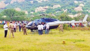 இதுபற்றி தகவலறிந்த சுற்று வட்டார கிராமத்திலுள்ள பொதுமக்கள் ஹெலிகாப்டரை காண கூட்டம் கூடினர். இதனால் அங்கு பரபரப்பு ஏற்பட்டது. இதையடுத்து போலீசார் விரைந்து வந்து ஹெலிகாப்டரை சுற்றி பாதுகாப்பு பணியில் ஈடுபட்டனர்.