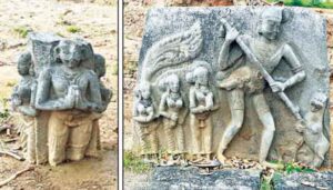 அந்த நடு கல்லில் வேட்டைக்கு செல்லும் வீரர் புலியை குத்துக் கம்பால் குத்தும்போது புலி வலி தாங்காமல் வாயை திறப்பதை போன்றும், அவருடன் சென்ற நாய் புலியை கடிப்பது போன்றும் உள்ளது.