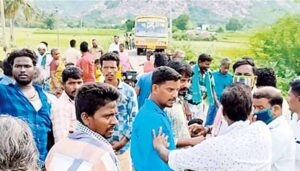 செஞ்சி அருகே உள்ள நல்லான்பிள்ளைபெற்றாள் அருந்ததியர் பாளையத்தை சேர்ந்த மாசிலாமணி மகன் கதிரவன் (வயது 13). இவன், வீட்டு சுவர் இடிந்து விழுந்ததில் நேற்று முன்தினம் இறந்தான். அவனது உடல் செஞ்சி அரசு மருத்துவமனையில் நேற்று பிரேத பரிசோதனை செய்யப்பட்டு, உறவினர்களிடம் ஒப்படைக்கப்பட்டது. இதையடுத்து சிறுவனின் உடலை அடக்கம் செய்ய பெற்றோர் மற்றும் உறவினர்கள் ஏற்பாடு செய்தனர். ஆனால் சுடுகாட்டிற்கு செல்ல பாதை வசதி இல்லை. எனவே கிராம மக்கள் ஒன்று திரண்டு சாலை மறியல் போராட்டத்தில் ஈடுபட்டனர்.