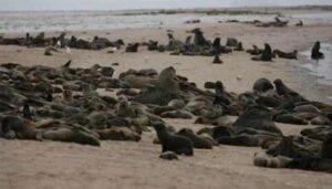 ஆப்பிரிக்க நாடான நமீபியாவில் உள்ள கடற்கரையில் ஆங்காங்கே சீல்கள் கொத்துக் கொத்தாக இறந்து கிடக்கின்றன.