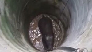 யானையின் பிளிறல் சத்தம் கேட்டு அக்கம் பக்கத்தினர் வந்து பார்த்த போது, 30 அடி ஆழ கிணற்றுக்குள் யானை உயிருக்கு போராடிக் கொண்டிருந்தது.