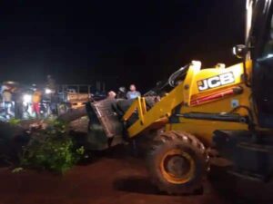 கிளிநொச்சியிலிருந்து வவுனியா நோக்கி பயணித்துக் கொண்டிருந்த அரச பேருந்து மீது வீதியின் அருகில் இருந்த பாரிய மரமொன்று முறிந்து விழுந்ததில் பேருந்தின் கூரைப்பகுதி சேதமாகியுள்ளது.