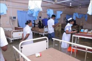 யாழ். மாவட்டத்தில் பெய்த கனமழையினால் யாழ். போதனா வைத்தியசாலையின் சில விடுதிக் கட்டடங்களின் பகுதிகள் நீரில் மூழ்கின.