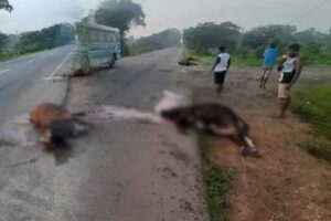 வவுனியா ஓமந்தை ஏரிபொருள் மீள் நிரப்பு நிலையத்திற்கு அருகே ஏ9 வீதியில் நான்கு மாடுகள் உடல்கள் சிதைந்த நிலையில் உயிரிழந்த நிலையில் காணப்படுகின்றன.