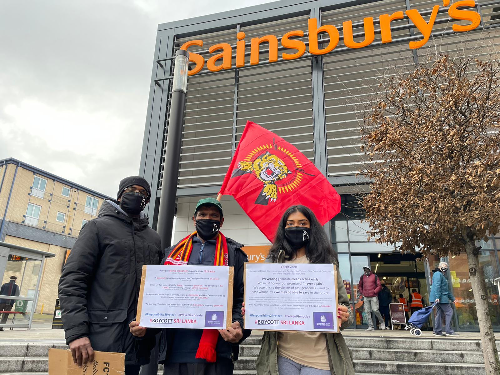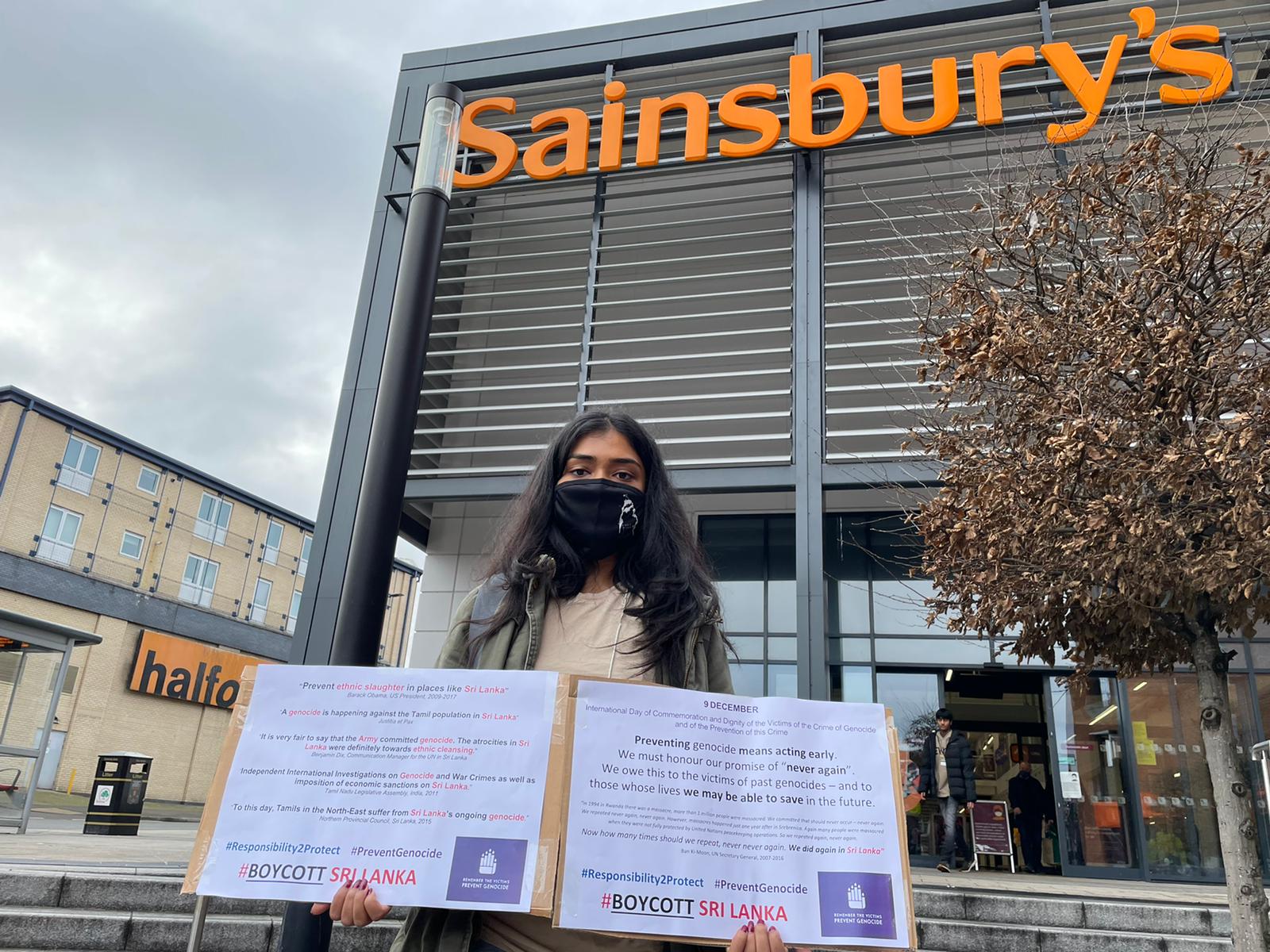 டிசம்பர் 9ம் திகதி ஐக்கிய நாடுகள் சபையால் இனஅழிப்பால் பாதிக்கப்பட்டோர் நினைவாகவும் இனஅழிப்புகளைத் தடுப்பதற்காகவுமான நாளாக அனுட்டிக்கப்படுகிறது. அதனையொட்டி பெருமளவிலான பிரித்தானியத் தமிழர்கள் சிறிலங்காவிலிருந்து அந்த அரசிற்கு அன்னியச் செலாவணி ஈட்ட இறக்குமதி செய்யும் பொருட்களை புறக்கணிக்கக்கோரி பிரபல வர்த்தக நிலையங்களின் வெளியே கவனயீர்ப்பு போராட்டங்களை நடாத்தினார்கள்.