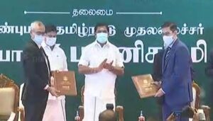 இந்தநிலையில் தமிழ்நாட்டில் தொழில் வளர்ச்சியை மேலும் அதிகரிப்பதற்காக பல புதிய திட்டங்களை தொடங்குவதற்கான புரிந்துணர்வு ஒப்பந்தங்கள் செய்ய ஏற்பாடு செய்யப்பட்டது. இந்த புதிய தொழில் திட்டங்களுக்கு ஒப்பந்தம் செய்யவும், அடிக்கல் நாட்டவும் மற்றும் தொடங்கி வைப்பதற்கான விழா சென்னையில் உள்ள தனியார் ஓட்டலில் இன்று மதியம் நடைபெற்றது.