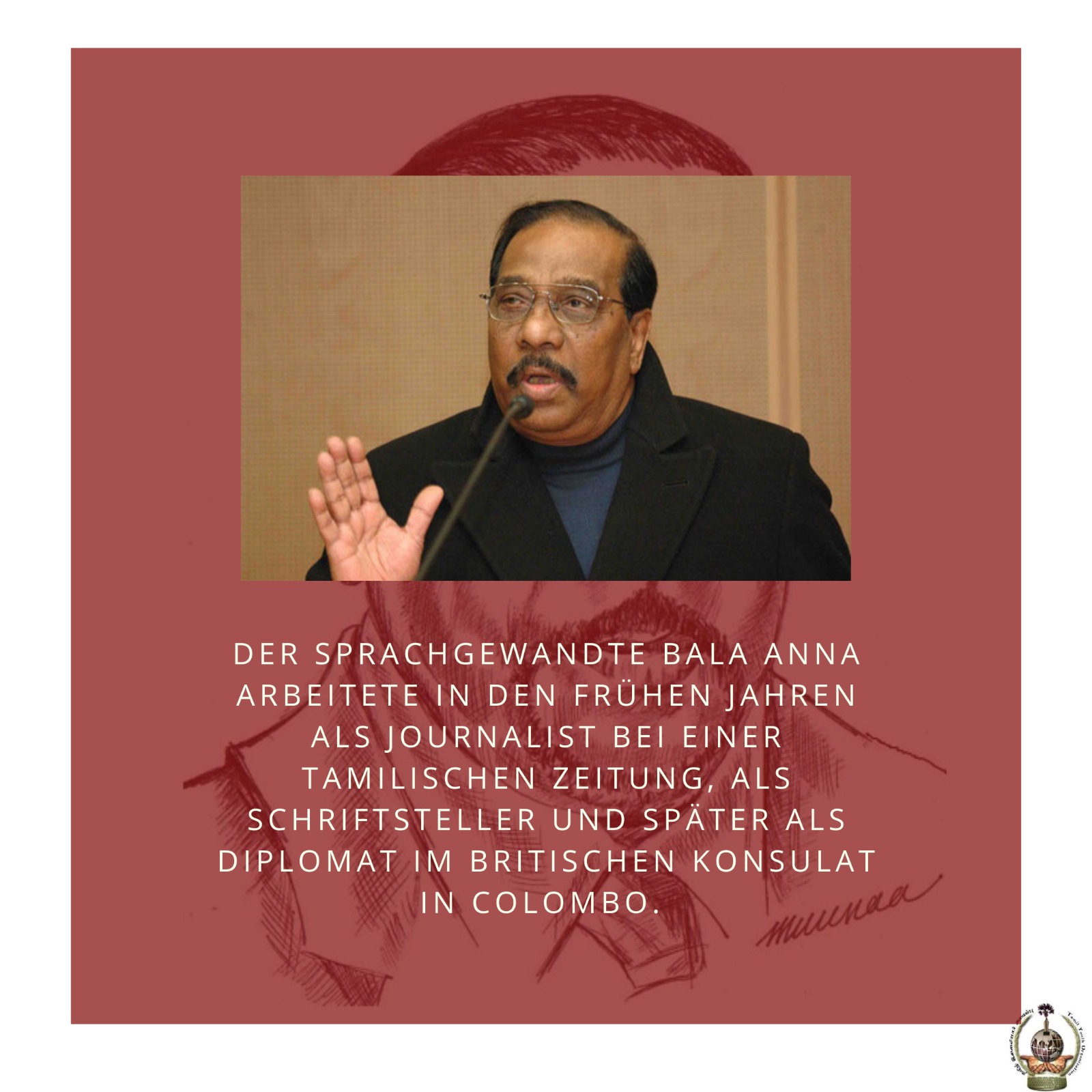 பேச்சுவல்லமை பொருந்திய பாலா அண்ணன் அவருடைய ஆரம்பநாட்களில் ஊடகவியளாளராக தமிழ்ப்பத்திரிகை ஒன்றில் வேலை புரிந்தாா். எழுத்தாளராகவும் பின்பு இலங்கைக்கான பிரித்தானிய தூதுவராலயத்திலும் வேலையாற்றி வந்தாா்.