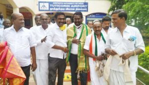 கன்னியாகுமரி மாவட்டத்தில் பல்வேறு நிகழ்ச்சிகளில் கலந்து கொள்வதற்காக தமிழக காங்கிரஸ் பொதுச் செயலாளர் விஜய் வசந்த் நேற்று சென்னையில் இருந்து விமானம் மூலம் தூத்துக்குடிக்கு வந்தார். அவரை மாவட்ட வர்த்தகபிரிவு காங்கிரஸ் தலைவர் டேவிட் பிரபாகரன், பொதுச் செயலாளர் காமராஜ், பிற்படுத்தப்பட்டோர் பிரிவு காங்கிரஸ் முன்னாள் தலைவர் ஜெயக்கொடி மற்றும் நிர்வாகிகள் வரவேற்றனர்.
