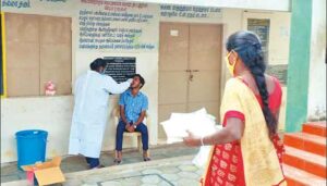 10, 12-ம் வகுப்புகளுக்காக பள்ளிகள் திறக்கப்பட்ட நிலையில் பள்ளிகளுக்கு வரும் ஆசிரியர்கள், மாணவர்களுக்கு கொரோனா பரிசோதனை சுகாதாரத்துறை மூலம் எடுக்கப்பட்டு வருகிறது.