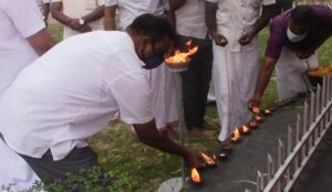 இதன்போது நினைவுத்தூபியில் ஈகச்சுடர் ஏற்றப்பட்டு மலரஞ்சலி செலுத்தப்பட்டதை தொடர்ந்து, உயிர் நீர்த்தவர்களின் ஆத்மா சாந்திவேண்டி மௌன அஞ்சலி செலுத்தப்பட்டது.