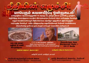 சிறிலங்காவை சர்வதேச குற்றவியல் நீதிமன்றத்தில் பாரப்படுத்த வேண்டும் என்ற பரிந்துரைக்கு வலுச்சேர்க்கவும் யேர்மன் வெளிவிவகார அமைச்சுக்கு முன்பாக நடைபெறும் மாபெரும் கவனயீர்ப்பு ஒன்றுகூடல்