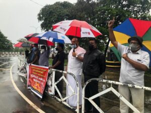 உழைக்கும் ஊடக தொழிற்சங்க சம்மேளனம், கிழக்கு மாகாண தமிழ் ஊடகவியலாளர்கள் ஒன்றியம் மற்றும் மட்டக்களப்பு மாவட்ட தமிழ் ஊடகவியலாளர்கள் ஒன்றியம் ஆகியவை இணைந்து இந்த ஆர்ப்பாட்டத்தை முன்னெடுத்திருந்தன.