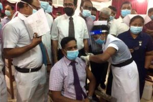 கொவிட் -19 நோய்த்தொற்று தடுப்பு நடவடிக்கையில் ஈடுபடும் மருத்துவ சேவையாளர்கள் மற்றும் சுகாதாரத் துறையினர்கள் நால்வருக்கு யாழ்ப்பாணம் போதனா வைத்தியசாலையில் தடுப்பூசி ஏற்றும் பணி ஆரம்பித்து வைக்கப்பட்டது.