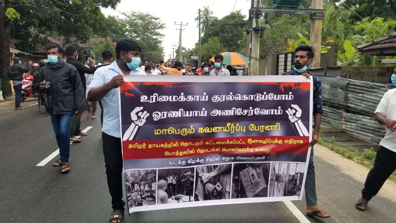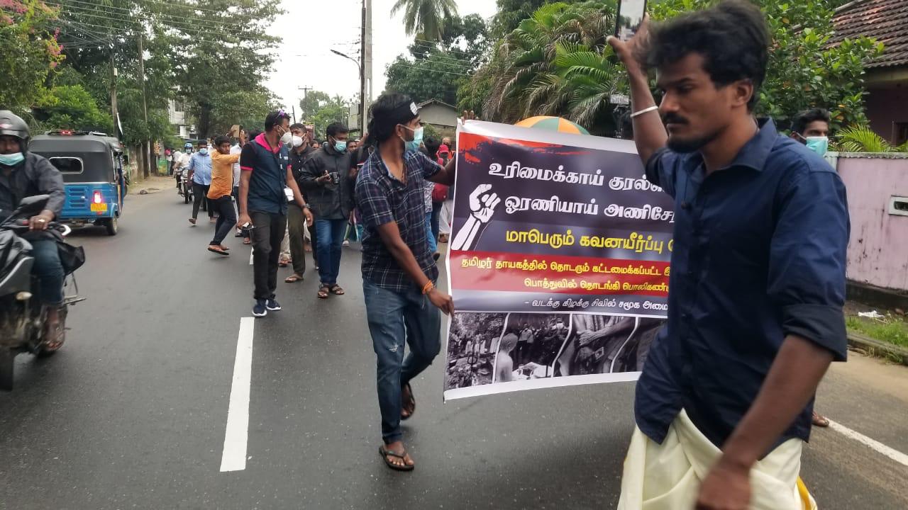 காட்டாற்று வெள்ளமாக முன்னேறும் பேரணி: திண்டாடும் பொலிஸ், இராணுவம்! தமிழ் இளைஞர்கள் முஸ்லிம் இளைஞர்கள் அரசியல் கட்சிகள் சிவில் சமூக அமைப்புக்களின் பிரதிநிதிகளும் இணைந்து மாபெரும் தொடர் போராட்டம் தடைகளைத் தாண்டி அக்கரைப்பற்று நகரில் பேரணி.