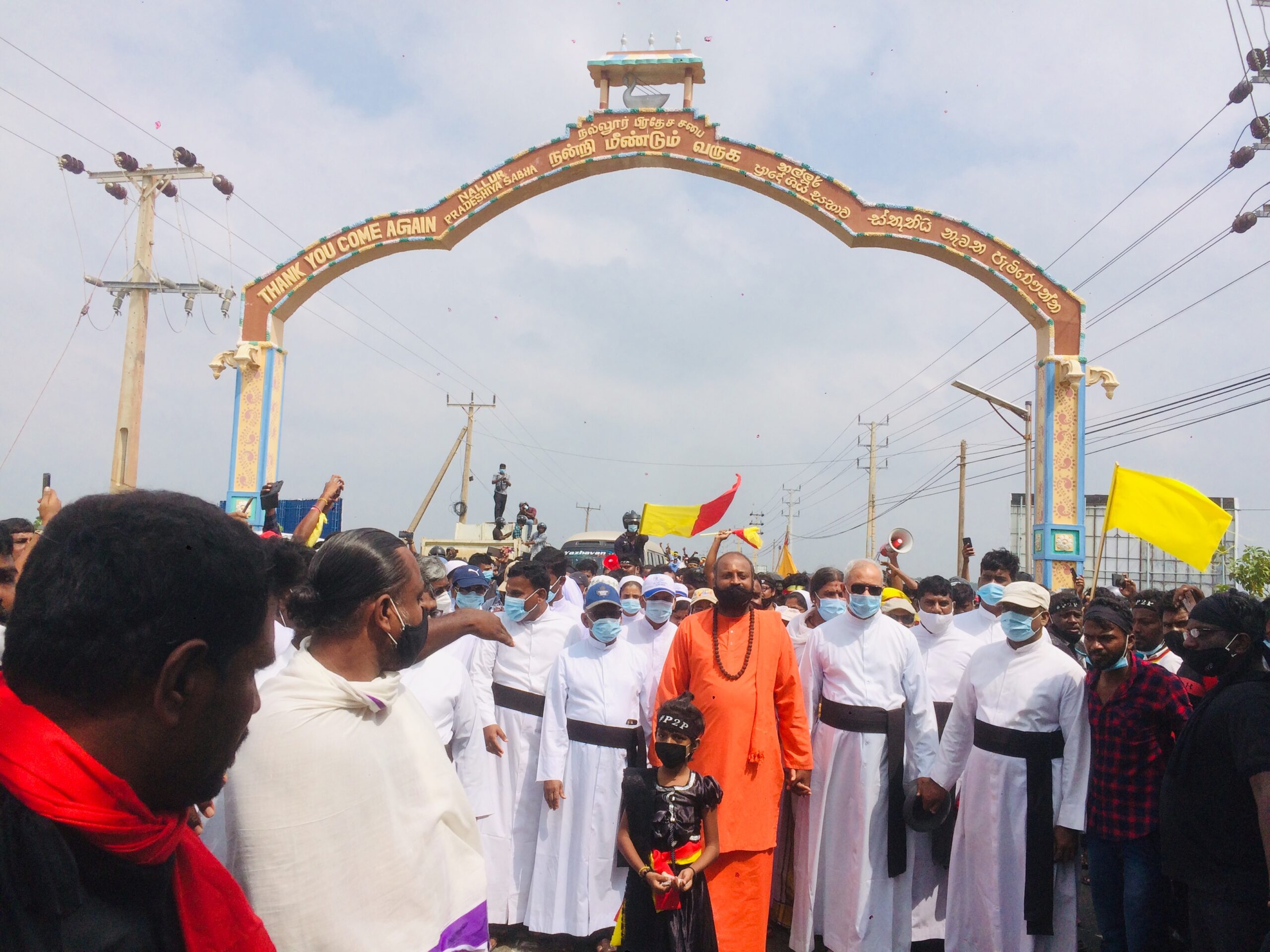 இந்த நிலையில் யாழ்ப்பாணம் மாநகருக்குள் வரவேற்கும் வகையில் செம்மணி நல்லூர் அலங்கார வளைவில் வைத்து மக்கள் பேரணிக்கு வரவேற்பளித்தனர்.