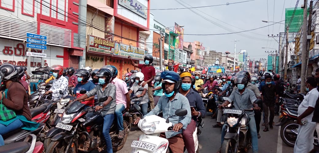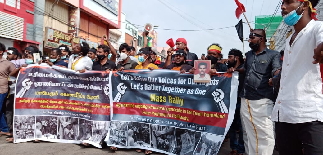இதேவேளை, இந்தப் பேரணியில் யாழ்ப்பாணத்தில் பல்லாயிரக்கணக்கான மக்கள் இணைந்துள்ளதுடன் பேரணி பேரெழுச்சியுடன் முன்னெடுக்கப்பட்டு வருகிறது. பொலிஸாரின் தடைகளையும் மீறி இந்தப் போராட்டம் முன்னெடுக்கப்படுகிறது.