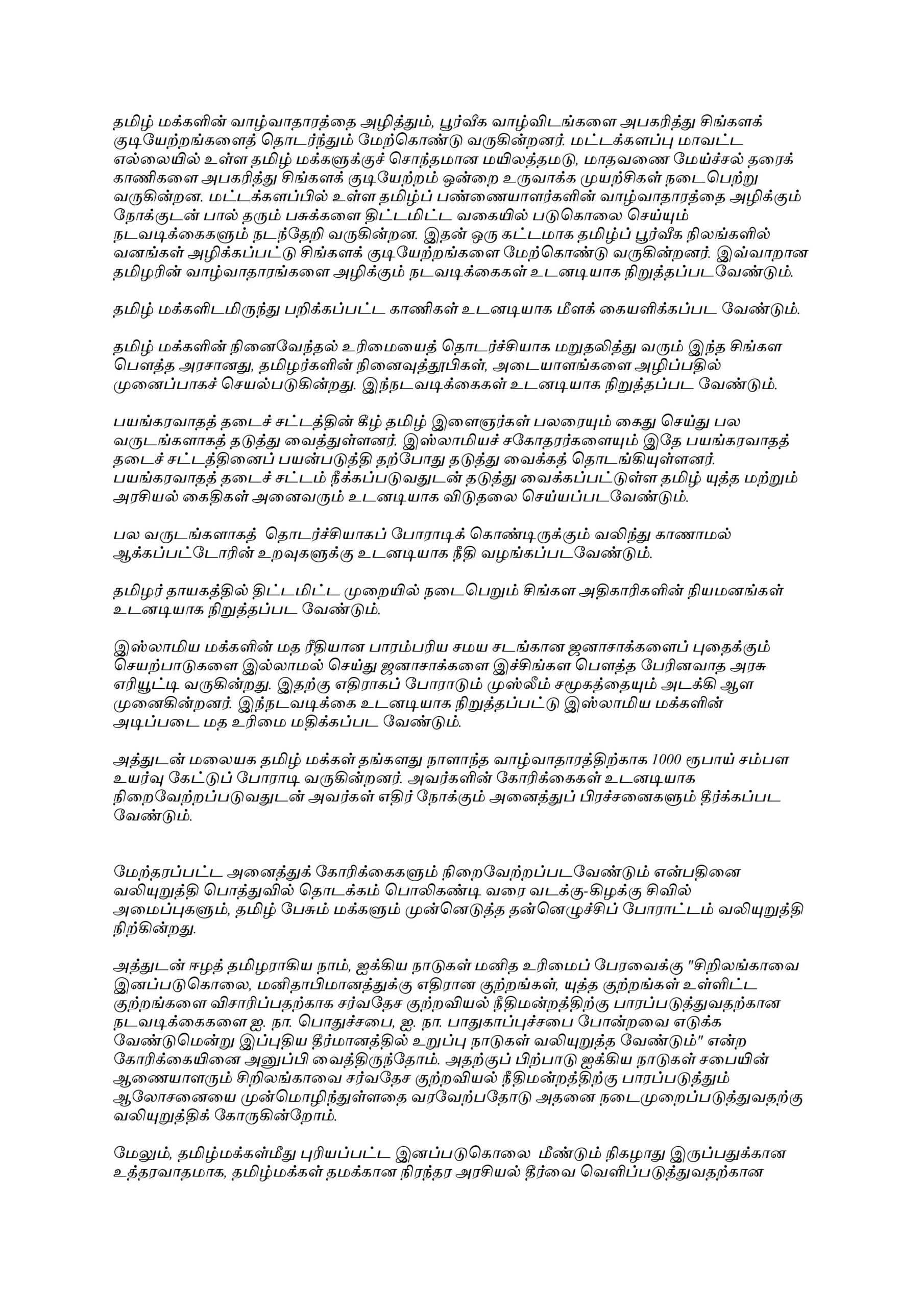 இதேவேளை, வடக்கு – கிழக்கு சிவில் சமூக அமைப்புக்கள் விடுத்துள்ள அறிக்கையில் தெரிவிக்கப்பட்டுள்ளதாவது;