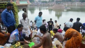 ராமேசுவரம் அக்னி தீர்த்தத்தில் அதிகாலையிலேயே பக்தர்கள் புனித நீராடி முன்னோர்களுக்கு தர்ப்பணம் கொடுத்து வருகின்றனர்.