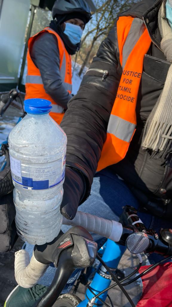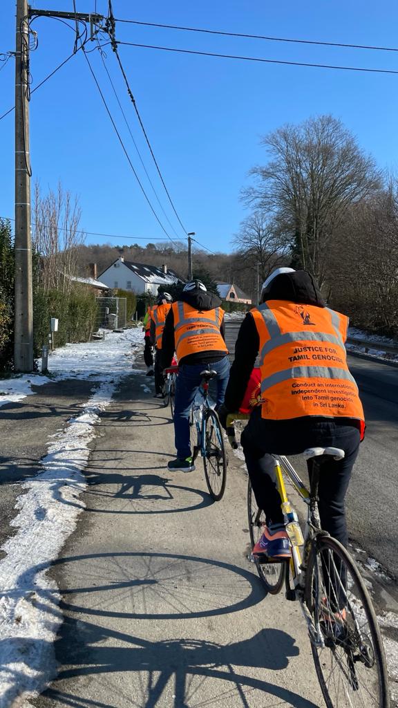 அத்தோடு செல்லும் பாதைகளில் சந்திக்கும் பல்லின மக்கள் மத்தியிலும் தமிழர்கள் மீது நடத்தப்பட்ட இனவழிப்பு பற்றியும் , அனைத்துலக சுயாதீன விசாரணையின் அவசியத்தையும் மற்றும் தமிழர்களுக்கு தமிழீழமே தீர்வு ..போன்ற பல கோரிக்கைகளையும் விழிப்புணர்வூட்டி வருகின்றார்கள். நாளை மீண்டும் தொடர இருக்கும் ஈருருளிப் பயணத்திற்கு மாவீரரே துணை நின்று இயற்கையும் வழி காட்டும் எனும் நம்பிக்கையில் வரும் 22.02.2021 வந்தடைந்து ஐ.நா முன்றலில் 01/03/2021 வரை உண்ணாநேன்பும் அதனை தொடர்ந்து ஐ.நா முன்றலில் பி.ப 2 மணிக்கு நடைபெற இருக்கும் கவனயீர்ப்பு பேரணி நோக்கி விரைகின்றது.
