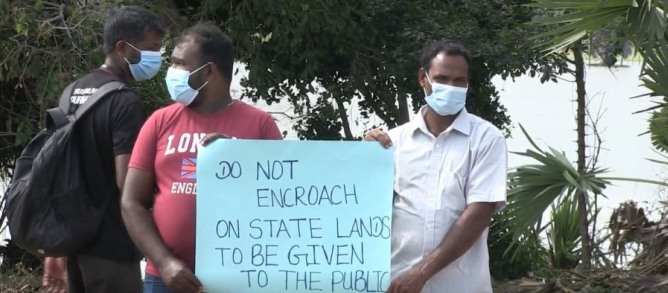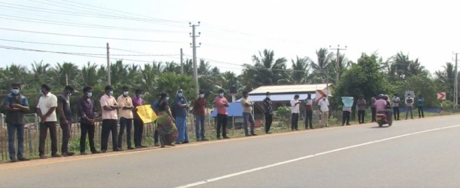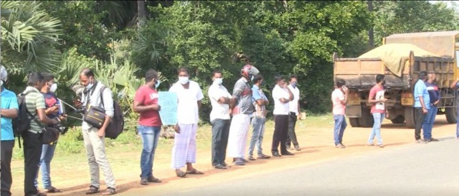 இதில் பால் பண்ணை மற்றும் கடற்றொழிலாளர் கூட்டுறவுச் சங்கங்களின் சமாசம் என பல்வேறு தேவைகளுக்கும் காணிகள் ஒதுக்கப்பட்டதாகவும் இதில் கடற்றொழிலாளர் கூட்டுறவுச் சங்கங்களின் சமாசத்துக்கு ஒதுக்கப்பட்ட காணியினை தனிநபர் ஒருவர் அடாத்தாக பிடித்து அபிவிருத்தி வேலைகளை முன்னெடுத்து வருகின்றமைக்கு எதிர்ப்பு தெரிவித்து குறித்த கவனயீர்ப்பு போராட்டம் இன்று (வெள்ளிக்கிழமை) மணிக்கு a-9 வீதியில் வீதியின் கரந்தாய் பகுதியில் நடைபெற்று உள்ளது.
