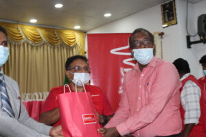 humedica தனியார் தொண்டு நிறுவத்தின் இயக்குநர் கலாநிதி பிருவிராச் ஊடகவியாளர்களுக்கான கொவிட் 19 சுகாதார பாதுகாப்பு பொதியினை வழங்கி வைத்தார்.