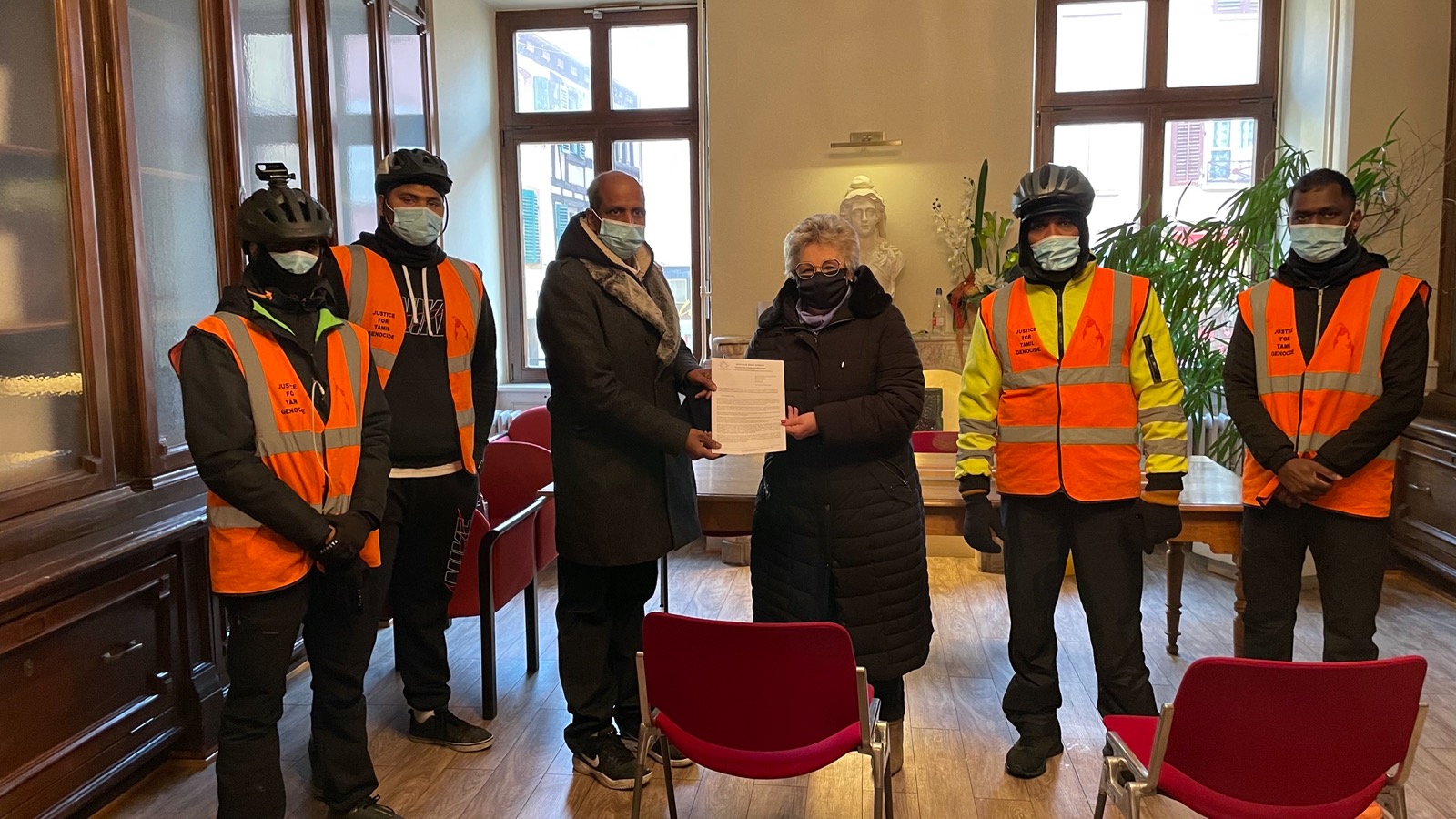 இன்று 16.02.2021 , Phalsbourg மாநகரசபையில் இருந்து மனித நேய ஈருருளிப்பயணம் தாயகத்திற்காக தம் இன்னுயிரை ஈந்தவர்களுக்கான அகவணக்கத்தோடு ஆரம்பமானது. அகவணக்கத்தில் Phalsbourg மாநகரசபை முதல்வரும் கலந்து கொண்டார். பின்னர் எமது கோரிக்கை அடங்கிய மனுவும் கையளிக்கப்பட்டது. தொடர்ச்சியாக மனித நேய ஈருருளிப்பயணம் Savren மாநகரசபையினை நோக்கி காவற்துறையின் வழித்துணையுடன் விரைந்தது. அங்கே உதவி முதல்வரினையும் சந்தித்து இக்கால கட்டத்தில் எமது இலக்கின் முக்கியத்துவம் என்ன என்பது பற்றியும் தமிழின அழிப்பிற்கு அனைத்துலக சுயாதீன விசாரணை அவசியம் என்பதனையும் அதற்காக பிரான்சு நாடு குரல் கொடுக்க வேண்டும் என கோரிக்கை மனு கையளிக்கப்பட்டது. அத்தோடு தொடர்ச்சியாகவே எமது அறவழிபோராட்டத்தினை சீர்தூக்கும் Savern மாநகரசபை இம்முறையும் தமிழ் மக்களுக்கு நியாயமான தீர்வு கிடைக்க வேண்டும் எனவும் அது தமிழின அழிப்பிற்கு அனைத்துலக சுயாதீன விசாரணையும், சுதந்திர தமிழீழ தேசம் தான் என நிச்சயம் பிரான்சு வெளிவிவகாரத்துறைக்கும் அரச அதிபருக்கும் வலியுறுத்துவோம் என வாக்குறுதி தரப்பட்டது.