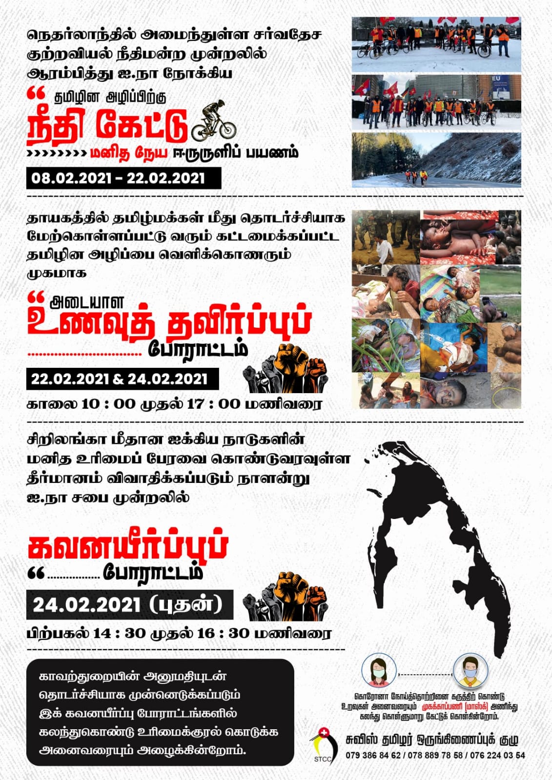 14வது நாளின் (21.02.2021) தமிழின அழிப்பிற்கு நீதிக்கான மனித நேய ஈருருளிப்பயணப் போராட்டமும் அவற்றினைத் தொடர்ந்து ஆரம்பமாகும் 7 நாள் அடையாள உணவுத்தவிர்ப்பு போராட்டமும்.