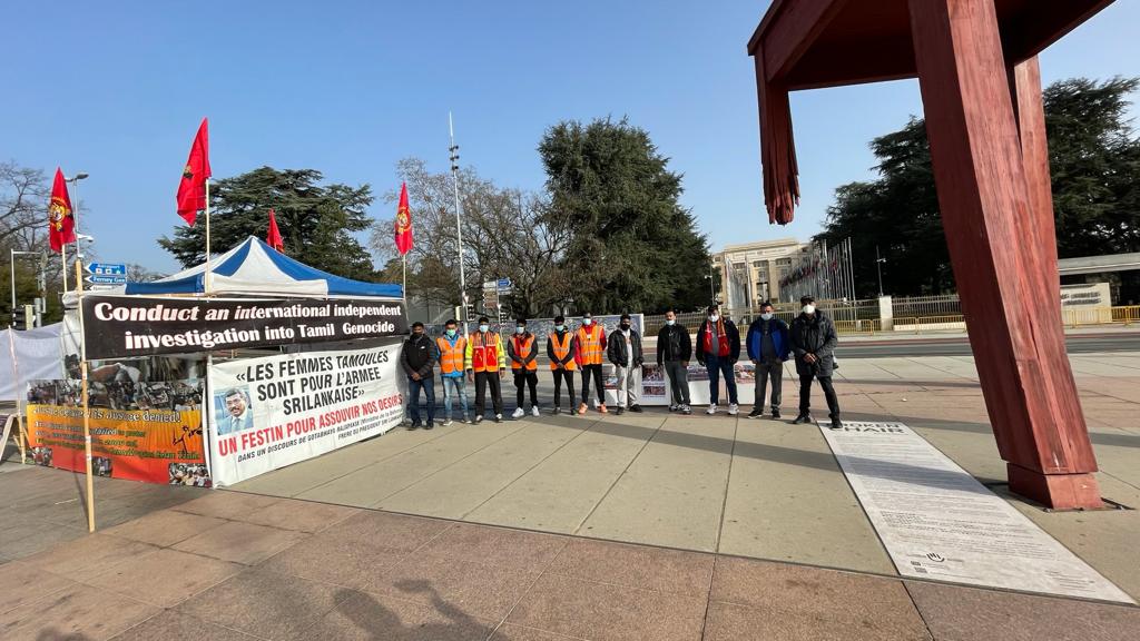 இன்று 24.02.2021 தமிழின அழிப்பு சார்ந்த விடயங்கள் ஐ.நா சபையில் விவாதிக்க இருக்கும் சம நேரத்தில் ஈகைப்பேரொளி முருகதாசன் திடலில் (ஐ.நா முன்றலில்) உணவுத்தவிர்ப்பு போராட்டமானது எமது மக்களுக்கு இழைக்கப்பட்ட இனவழிப்பிற்கு அனைத்துலக சுயாதீன விசாரணையினையும் தமிழீழமே நிரந்தர தீர்வு எனும் கோரிக்கைகளை வலியுறுத்தி 3ம் நாளாக விடுதலை ஓர்மத்தோடு தொடர்கின்றது.