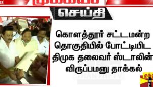 2011 மற்றும் 2016-ம் ஆண்டு சட்டசபை தேர்தல்களில் கொளத்தூர் தொகுதியில் போட்டியிட்டு வென்ற மு.க.ஸ்டாலின் 3-வது முறையாக அத்தொகுதியில் போட்டியிட விருப்பமனு தாக்கல் செய்துள்ளார்.