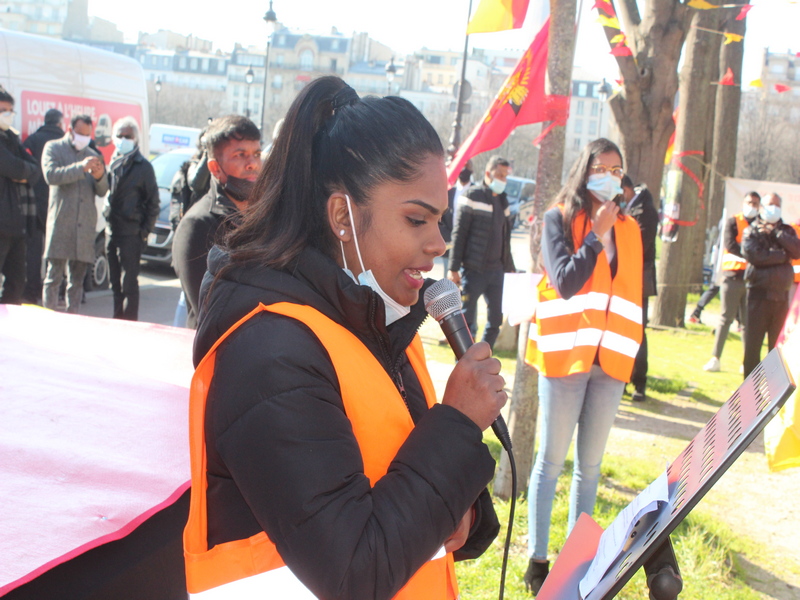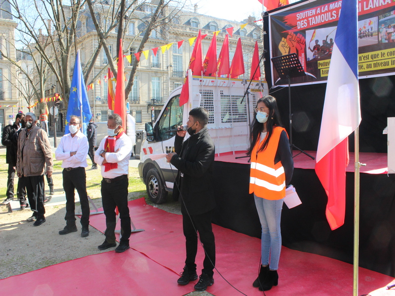 சிறிலங்கா அரசின் தமிழினப்படுகொலையைக் கண்டித்தும், பொத்துவில் தொடக்கம் பொலிகண்டி வரை போராட்டத்தின் தொடர்ச்சியாக எமது போராட்டத்தின் அவசியத்தை ஐக்கிய நாடுகள் சபையின் ஜெனிவா கூட்டத்தொடரிற்கு பிரான்சு அரசின் கவனத்தை ஈர்க்கும் நோக்கோடும், பிரான்சு வாழ் தமிழ் மக்களின் பேரெழுச்சிப் போராட்டம் பிரெஞ்சு தேசப் பாராளுமன்ற முன்றிலில் மிகவும் பேரெழுச்சியோடு இன்று (01.03.2021) திங்கட்கிழமை இடம்பெற்றது.