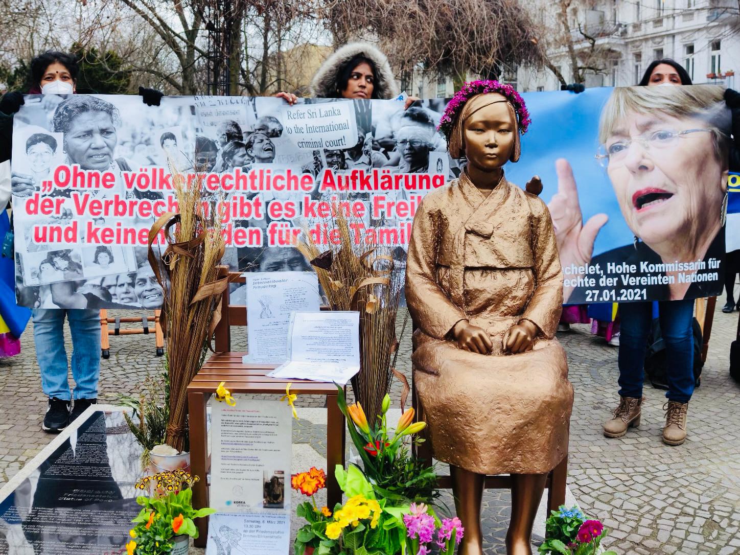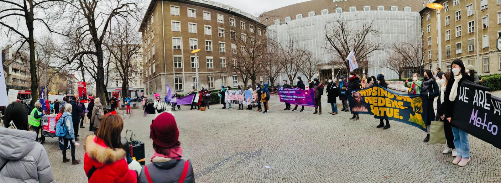 சமூகம், அரசியல், பொருளியல் போன்ற துறைகளில் பெண்கள் அடைந்துள்ள முன்னேற்றத்தை கொண்டாடுவதற்கான நாளாக இந்த நாள் உருவெடுத்துள்ளது.அந்தவகையில் பன்னாட்டு பெண்கள் தினத்தை முன்னிட்டு நேற்றைய தினம் 06.03.2021 அன்று யேர்மன் தலைநகரில் நடைபெற்ற பேரணியில் தமிழ் பெண்கள் அமைப்பு மற்றும் தமிழ் இளையோர் அமைப்பு பிரதிநிதிகளும் கலந்துகொண்டு தமிழீழப் பெண்களுக்காக உரிமைக்குரல் எழுப்பினர்.