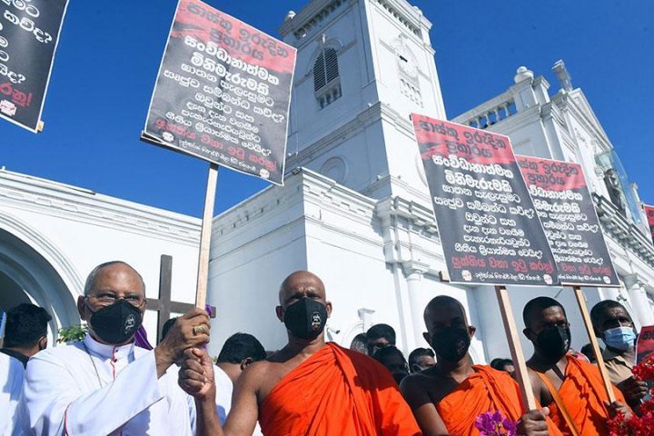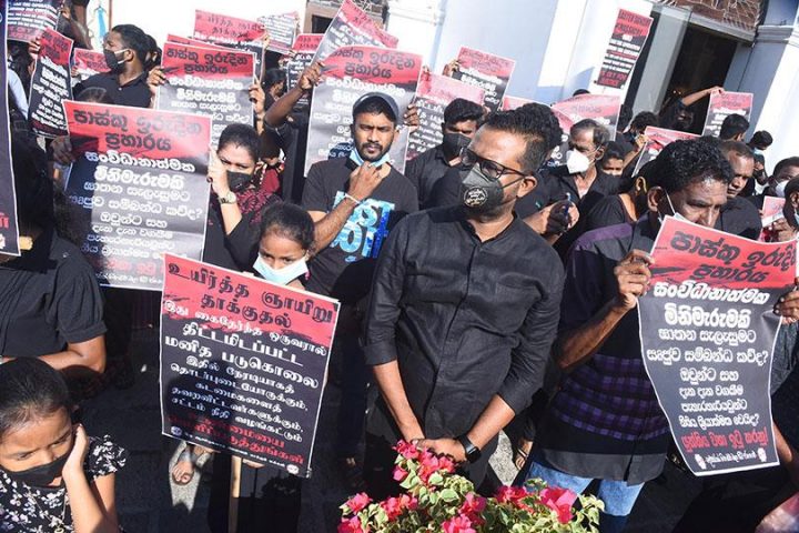‘உயிர்த்த ஞாயிறு தாக்குதல் இது கைதேர்ந்த ஒருவரால் திட்டமிடப்பட்ட மனிதப் படுகொலை, இதில் நேரடியாக தொடர்புடையவர்களுக்கும் கடமைகளைத் தவறவிட்டவர்களுக்கும் சட்டம் நீதி வழங்கட்டும்’ என்ற வாசகம் எழுதப்பட்ட பதாதைகளை ஏந்தியவாறு மக்கள் போராட்டத்தில் ஈடுபட்டனர்.