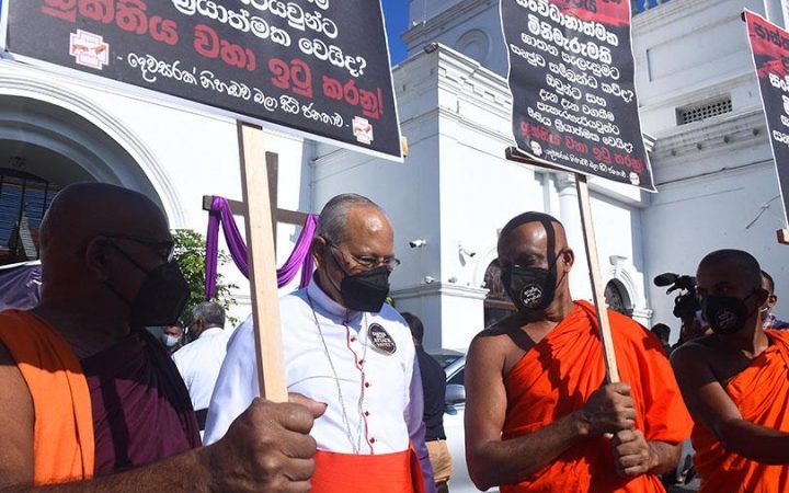 இந்தப் போராட்டத்தில் கொழும்பு பேராயர் கர்தினால் மெல்கம் ரஞ்சித் ஆண்டகையுடன் இணைந்து பௌத்த மதகுருமாரும் பங்கேற்றுள்ளனர்.