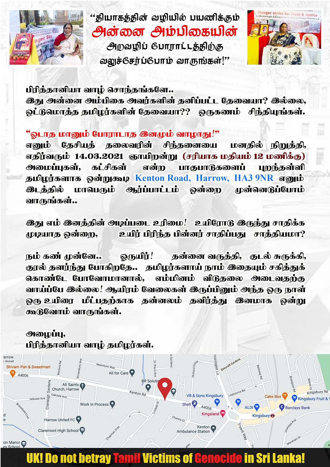 புலம்பெயர் தேசங்களில் முக்கிய செய்திகள் பிருத்தானியா வாழ் தமிழ்ச் சொந்தங்களே அணிதிரளுங்கள் அன்னையைக் காப்போம். Posted on March 13, 2021 at March 13, 2021 by சமர்வீரன் 507 0 பிருத்தானியா வாழ் தமிழ்ச் சொந்தங்களே அணிதிரளுங்கள் அன்னையைக் காப்போம்.