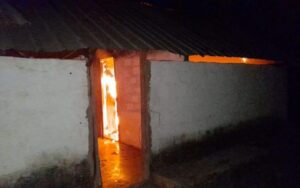 குறித்த வீட்டைவிட்டு வெளியேற வேண்டும் என எச்சரிக்கப்பட்ட நிலையில் வீட்டில் இருந்த பொருட்களை ஏற்ற குடியிருந்தவர் சென்றுள்ளார். இதனை அவதானித்த சிலர் வீட்டுக்கு தீ மூட்டியதாக கிராமத்தவர்கள் தெரிவித்துள்ளனர்.