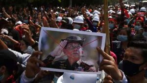 தென்கிழக்கு ஆசிய நாடான மியான்மரில் ஜனநாயக ரீதியில் தேர்ந்தெடுக்கப்பட்ட அரசை கவிழ்த்து ஆட்சி அதிகாரத்தை ராணுவம் கைப்பற்றியுள்ளது. மேலும் நாடு முழுவதும் ஓராண்டுக்கு அவசரநிலையை ராணுவம் அறிவித்துள்ளது. ஆங் சான் சூகி உள்பட முக்கிய அரசியல் தலைவர்களும் வீட்டுக்காவலில் வைக்கப்பட்டுள்ளனர். மியான்மர் ராணுவத்தின் நடவடிக்கைக்கு கண்டனம் தெரிவித்து மக்கள் வீதிகளில் இறங்கி போராடி வருகின்றனர்.