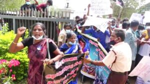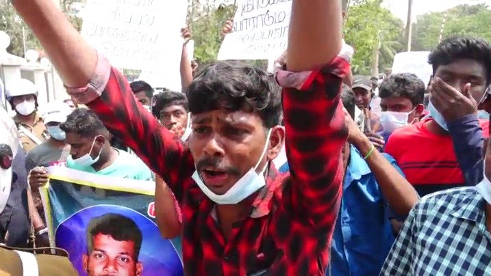 அத்துடன், கொலையைத் தொடர்ந்து கடந்த திங்கட்கிழமை காலை இறந்தவரின் மனைவி மற்றும் சகோதரிகள் மீது தருமபுரம் பொலிஸார் மேற்கொண்ட தாக்குதலைக் கண்டித்தும் இந்த ஆர்ப்பாட்டம் இன்று முன்னெடுக்கப்பட்டது.