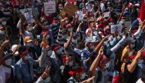 இதனை தொடர்ந்து ராணுவ ஆட்சிக்கு எதிராக அங்கு மாபெரும் போராட்டம் வெடித்தது. நாட்டில் ஜனநாயகத்தை மீட்டெடுக்க கோரியும், சிறை வைக்கப்பட்டுள்ள அரசியல் தலைவர்களை உடனடியாக விடுவிக்க வலியுறுத்தியும் தினந்தோறும் பல்லாயிரக்கணக்கான மக்கள் வீதியில் இறங்கி போராட்டம் நடத்தி வருகின்றனர். இந்த போராட்டத்தை ராணுவம் இரும்பு கரம் கொண்டு ஒடுக்கி வருகிறது.