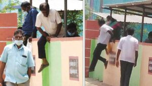 இதற்கிடையில் நுழைவு வாயில் கதவு பூட்டப்பட்டிருந்ததால் வேறு வழியில்லாமல் பள்ளியின் பக்கவாட்டு சுவரில் ஏறி குதித்து தாண்டி வெளியே சென்றனர். இதில் ஆண் ஆசிரியர்களுக்கு இணையாக ஆசிரியைகளும் குதித்து வெளியில் சென்றனர். ஏதோ பெரும் விடுதலை பெற்றதை போல மதியத்திற்கு மேல் பயிற்சி வகுப்பில் பங்கேற்றாமல் நிம்மதியுடன் அவர்கள் சென்றதை காணமுடிந்தது.
