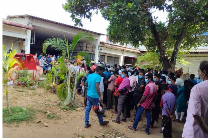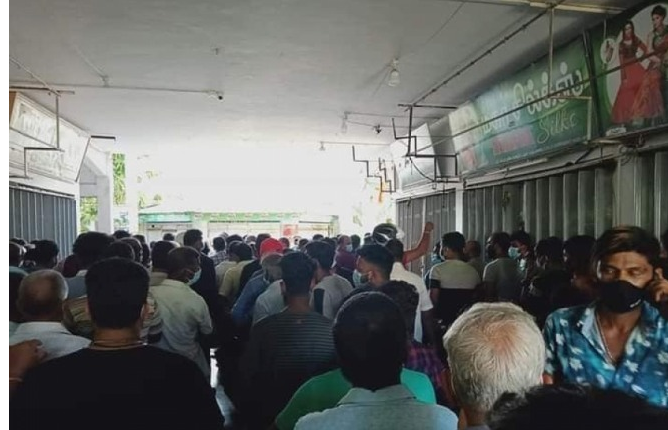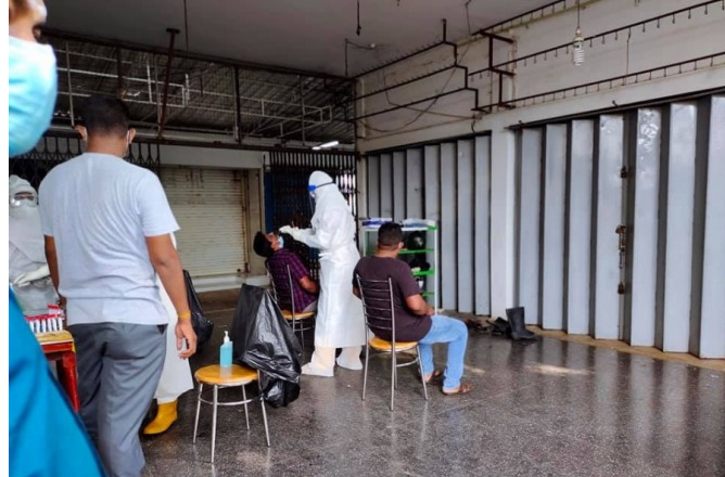 யாழ். நகர் நவீன சந்தைக் கட்டடத் தொகுதியின் மூன்று இடங்களில் யாழ். மாநகர சபை சுகாதார வைத்திய அதிகாரி பிரிவினரால் பரிசோதனை மேற்கொள்ளப்பட்டுவரும் நிலையில் அங்கு நூற்றுக்கணக்கானவர்கள் பரிசோதனை மேற்கொள்ள ஒன்றுகூடியுள்ளனர்.
