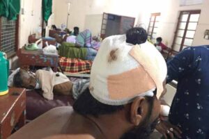 அங்கு அவரின் தலைப்பகுதிக்கு கத்தியால் தாக்குதல் மேற்கொள்ளப்பட்டுள்ளது. அதன் பின்னர் அங்கு நின்றிருந்த சிலர் கற்களால் அவரின் தலையில் தாக்கியதில் அவர் படுகாயம் அடைந்திருக்கின்றார்.