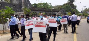 இலங்கை வங்கி ஊழியர் சங்கத்தினர் மதிய உணவு இடைவேளையுடன் பணிப் பகிஷ்கரிப்புப் போராட்டத்தை யாழ்ப்பாணத்தில் முன்னெடுத்துள்ளனர்.