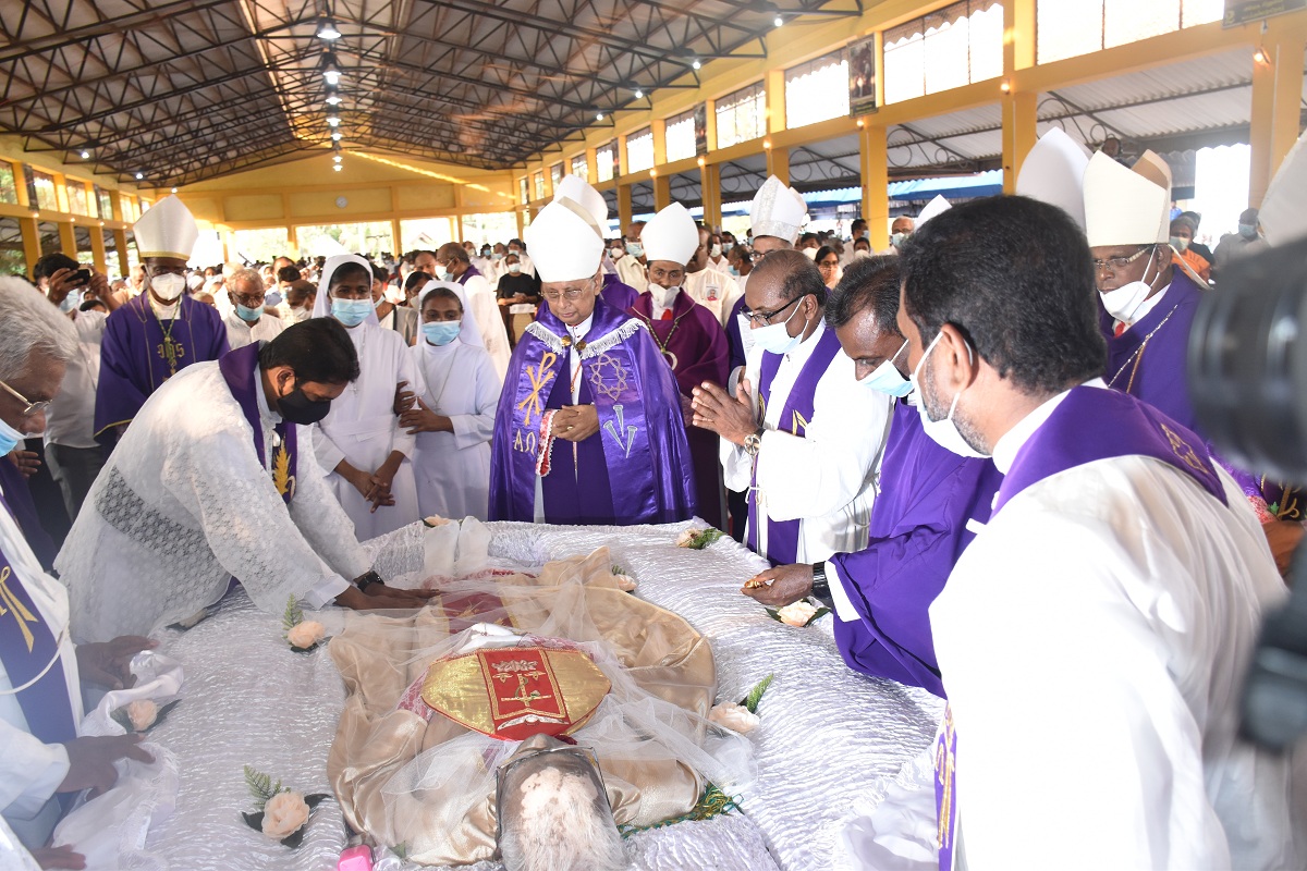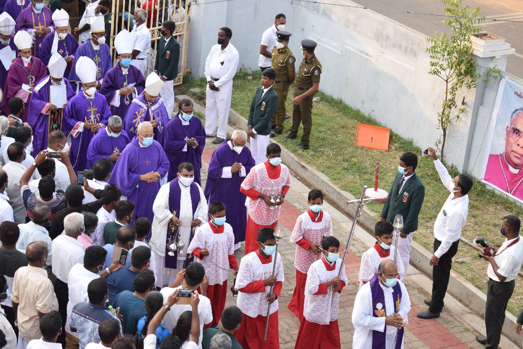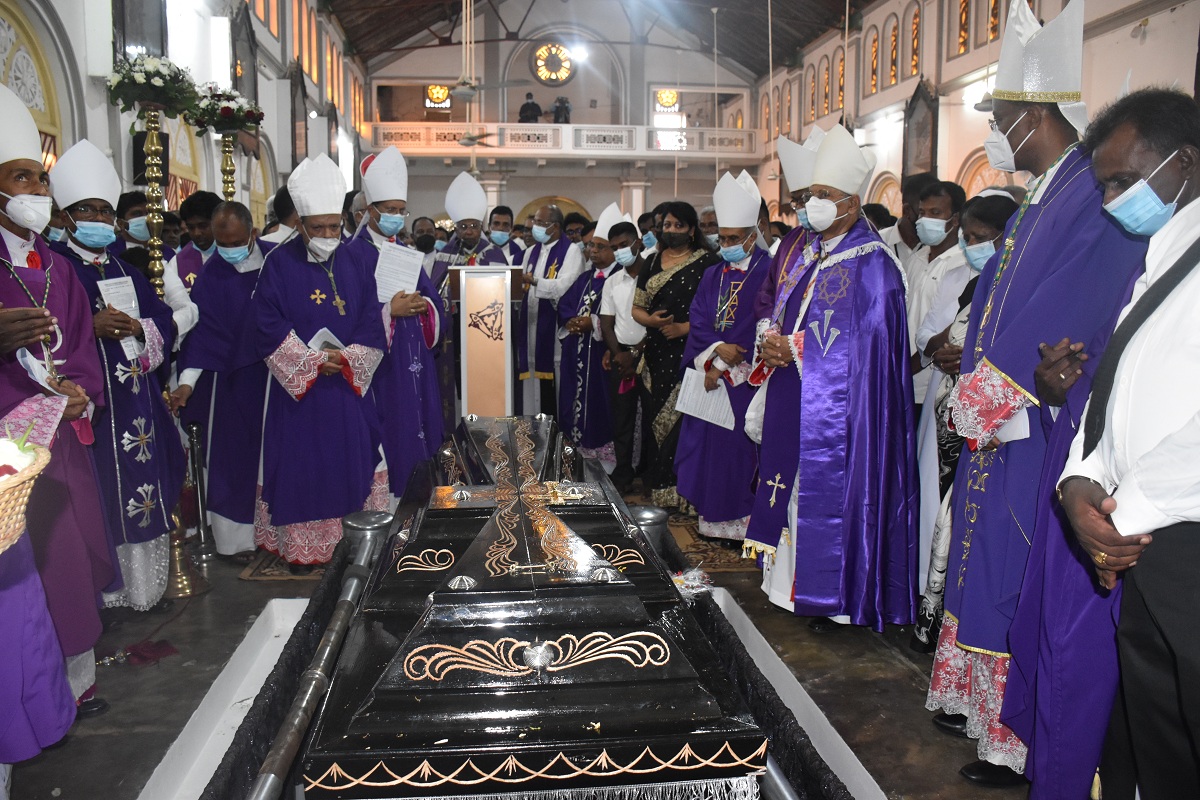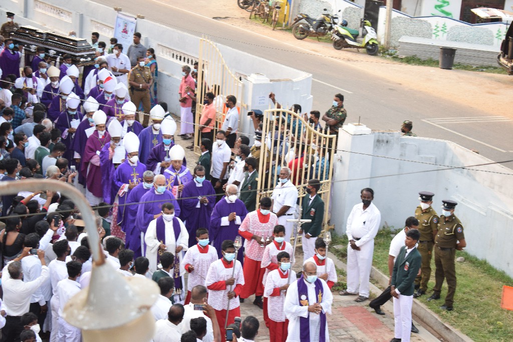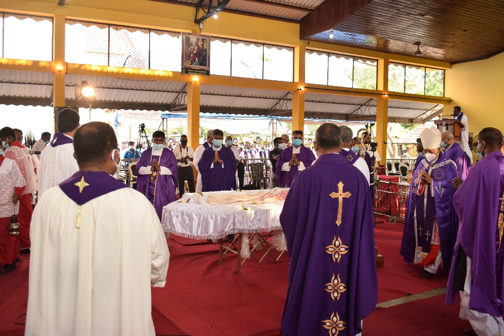 இலங்கையில் உள்ள மறைமாவட்ட ஆயர்களின் இரங்கல் திருப்பலியுடன், மாலை 5.30 மணியளவில் ஆலயத்தில் நல்லடக்கம் செய்யப்படது.
