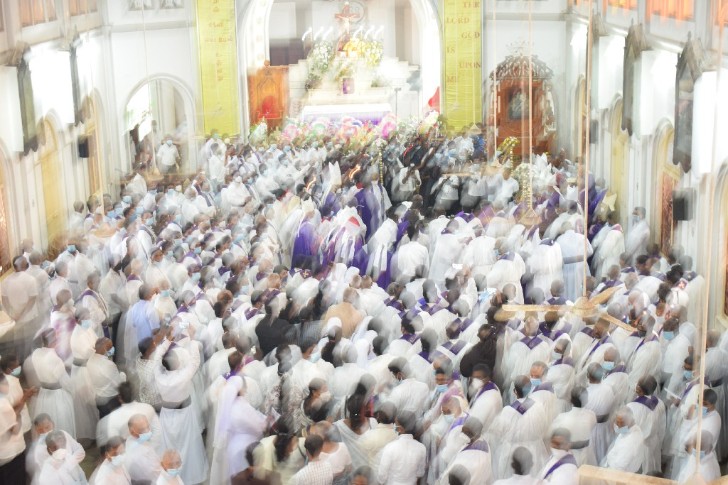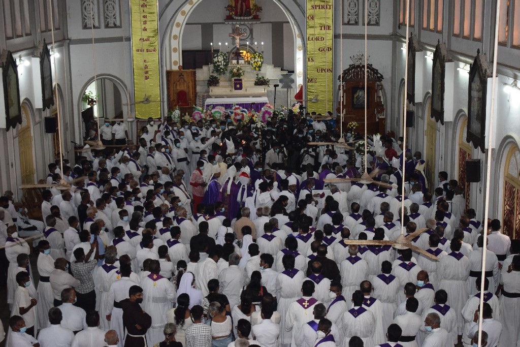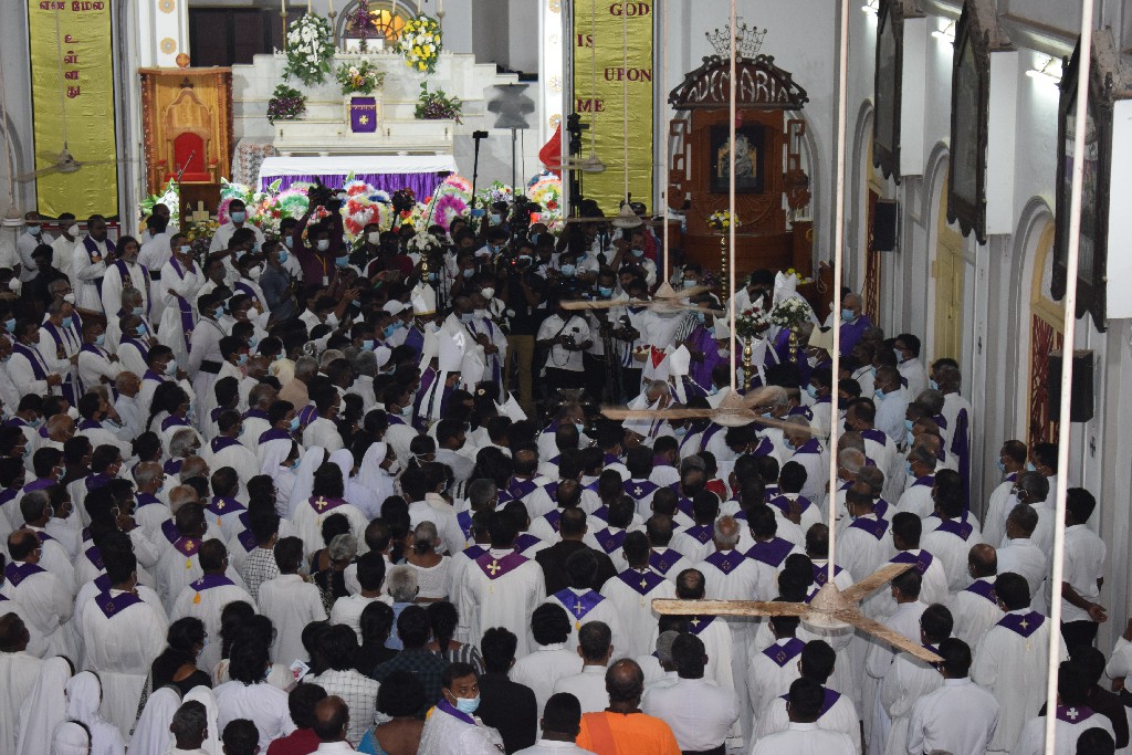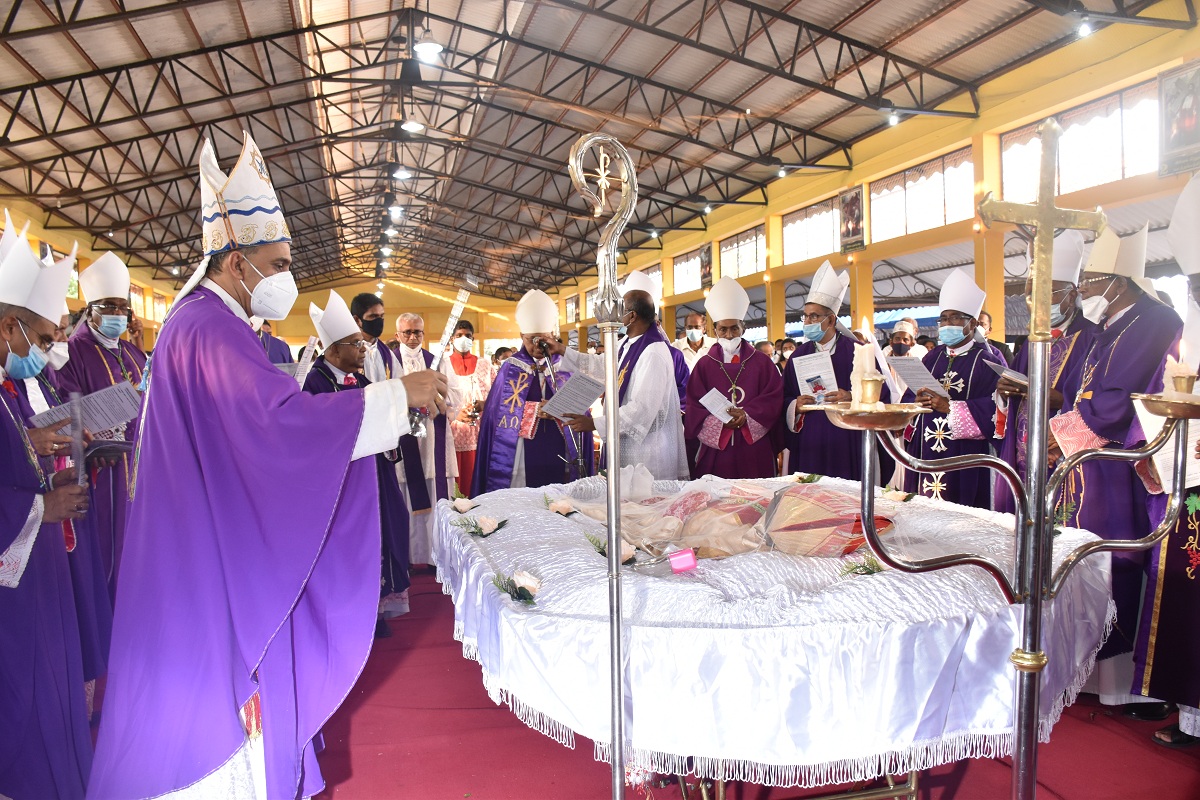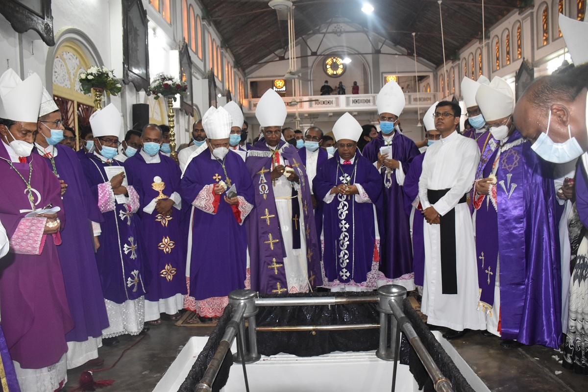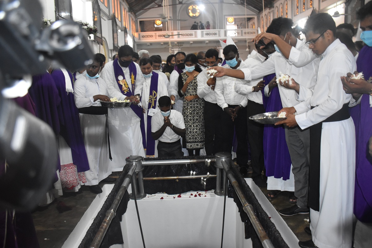 இலங்கையில் உள்ள மறைமாவட்ட ஆயர்களின் இரங்கல் திருப்பலியுடன், மாலை 5.30 மணியளவில் ஆலயத்தில் நல்லடக்கம் செய்யப்படது.
