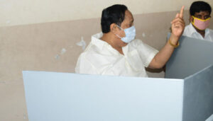 தி.மு.க பொதுச்செயலாளர் துரைமுருகன் காட்பாடி காந்திநகரில் உள்ள வாக்குச்சாவடிக்கு சென்று தனது வாக்கை பதிவு செய்தார்.