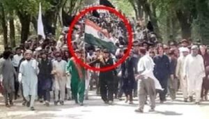 வைரல் புகைப்படம், பிடிஎம் பயங்கரவாதிகள் வெளிப்படையாக இந்திய தேசிய கொடியை அசைக்கின்றனர். அவர்களின் தீய எண்ணம் வெளிப்பட்டுவிட்டது. பஷ்தூன் இந்திய பாம்புகளை நிராகரிக்கிறது எனும் தலைப்பில் பகிரப்பட்டு வருகிறது.