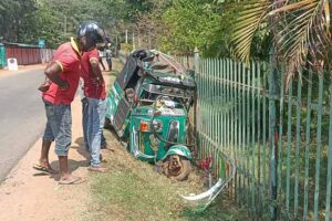 நூலக வீதியூடாக வவுனியா நகர் நோக்கி பயணித்துக் கொண்டிருந்த முச்சக்கரவண்டி சைவப்பிரகாச மகளிர் கல்லூரிக்கு முன்பாக சாரதியின் கட்டுப்பாட்டையிழந்து வீதியிலிருந்து கீழிறங்கி விபத்துக்குள்ளானது.